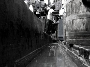 Dhobi Ghat is buzzing with activity from sunrise. The washermen beat the clothes against the rock in their respective quarters, making splinters of water drops fly off in all directions. I had completed my quota of capturing the washermen in action. I wanted to try something different. Hence the name.
